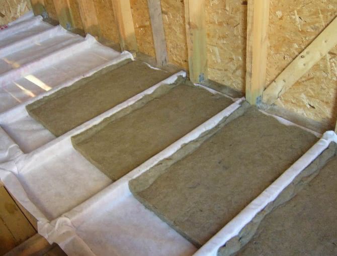 Утеплитель устанавливается в конструкции перекрытия чердака.
