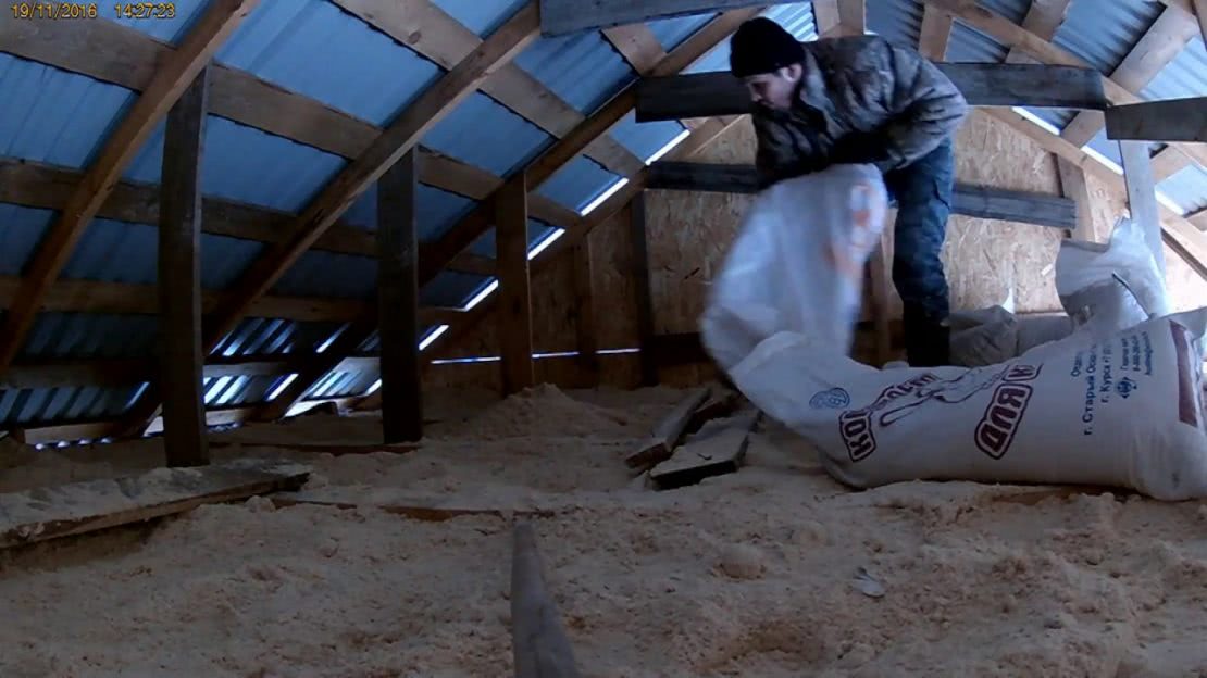 Процесс утепления холодного чердака опилками выглядит следующим образом: