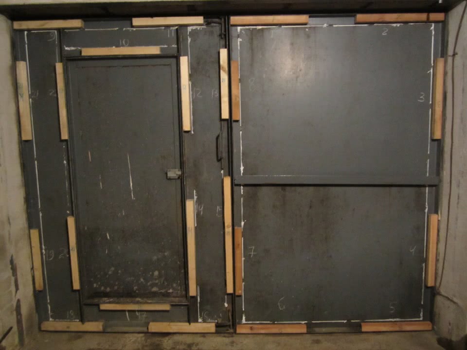 - Самодельные поворотно-подъёмные. Тут всё аналогично с распашной конструкций, так как опять имеем дело со стальным листом, перекрывающим вход в здание. Его можно и нужно утеплить;