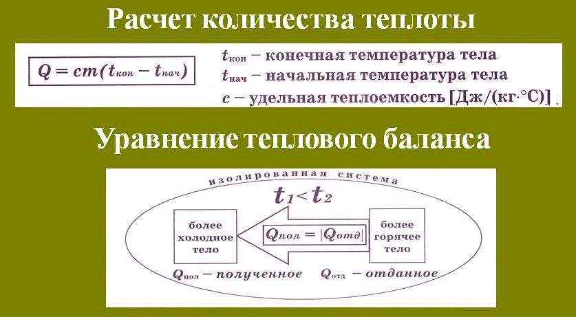 По этой же формуле вычисляется и количество теплоты, которое тело отдаёт при охлаждении. Только в этом случае от начальной температуры следует отнять конечную, т.е. от большего значения температуры отнять меньшее.