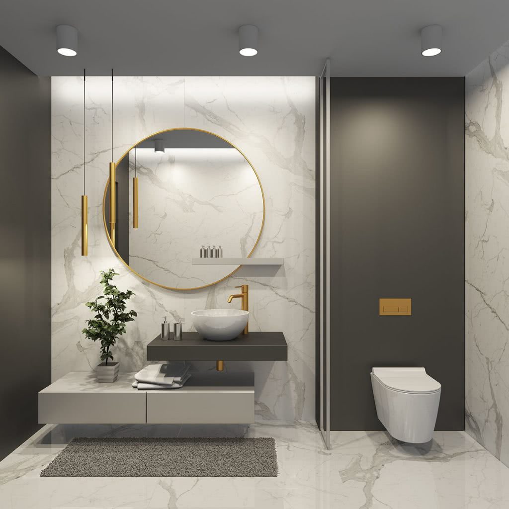 Ванные комнаты обычно требуют правильного освещения с множеством источников света. Если в ванной комнате нет большого окна, через которое проникает естественный свет, вам необходимо установить осветительные приборы вокруг зеркала, рекомендуется с обеих сторон. Вы можете выбрать круглые, квадратные или овальные акценты, которые можно установить либо над зеркалом, либо над ванной. Если вы решили украсить ванную комнату конкретными декоративными элементами, вы можете выделить их с помощью светильников.