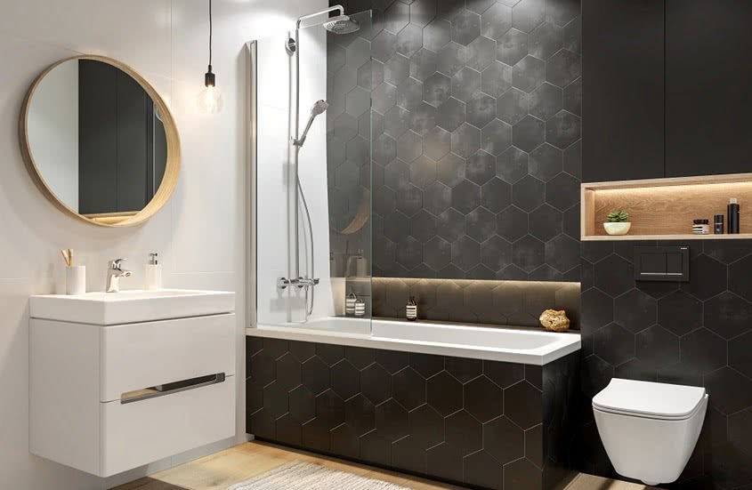 Применение при декорировании модной плитки для ванной всегда актуально благодаря как практичности и прочностным характеристикам материала, так и способности неузнаваемо преобразить самое обычное помещение.