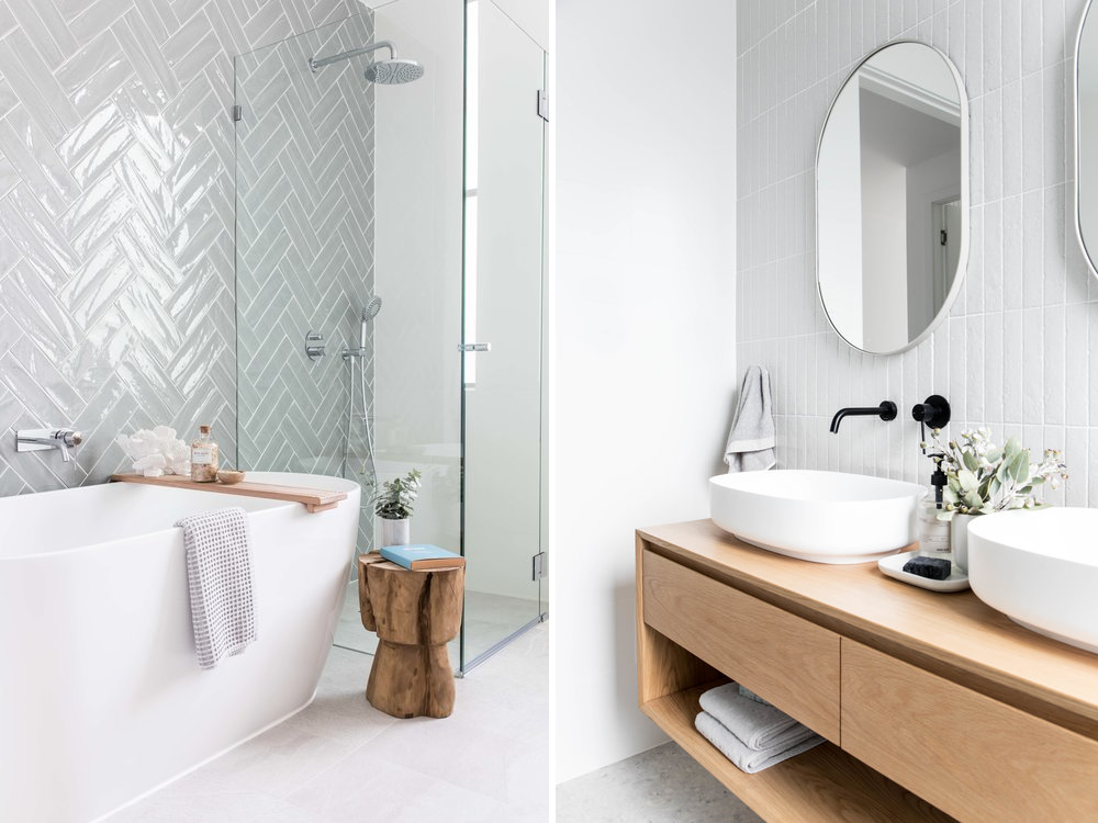 Конечно, чем меньше ванная, тем больше мы ограничиваемся небольшой площадью с характерными элементами (зона умывальника и душа, одна стена или ее фрагмент). Также могут помочь интригующие узоры плитки — часто с необычной трехмерной текстурой.