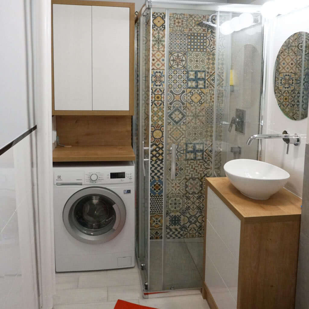 Стиральная машина незаменима в домашних условиях и, как правило, если позволяет пространство, может быть установлена в ванной комнате. В маленькой ванной комнате, если вы откажетесь от ванны, стиральная машина может быть легко размещена там, где вы получаете дополнительное пространство. Вы можете встроить ее в мебель или использовать ее поверхность для хранения различных вещей, таких как предметы личной гигиены, вешалки для полотенец или других аксессуаров для ванной комнаты.