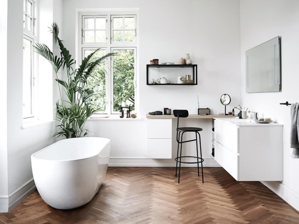 Выразительный декор ванной комнаты не убеждает, а темные цвета кажутся слишком темными? Стоит сделать акцент на минимализме, но в утепленном и «прирученном» варианте. Речь идет о цветовой дисциплине, приглушенной цветовой палитре (белый, серый, пастель) и строго упорядоченном пространстве.