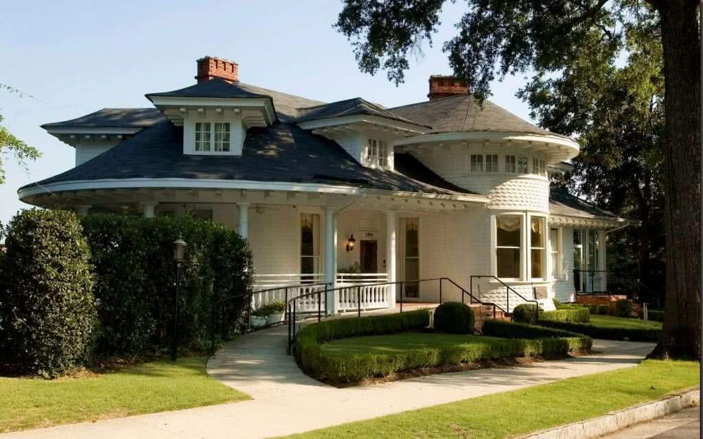 Экстерьер в английском стиле, пожалуй один из классических дизайнов сочетания штукатурки и дерева. В данном стиле присутствуют большие окна, отделка штукатуркой до 80% всего дома и отдельные вставки из дерева. Такой стиль подойдет для недорогой отделки дома. Смотрится очень стильно и изящно.