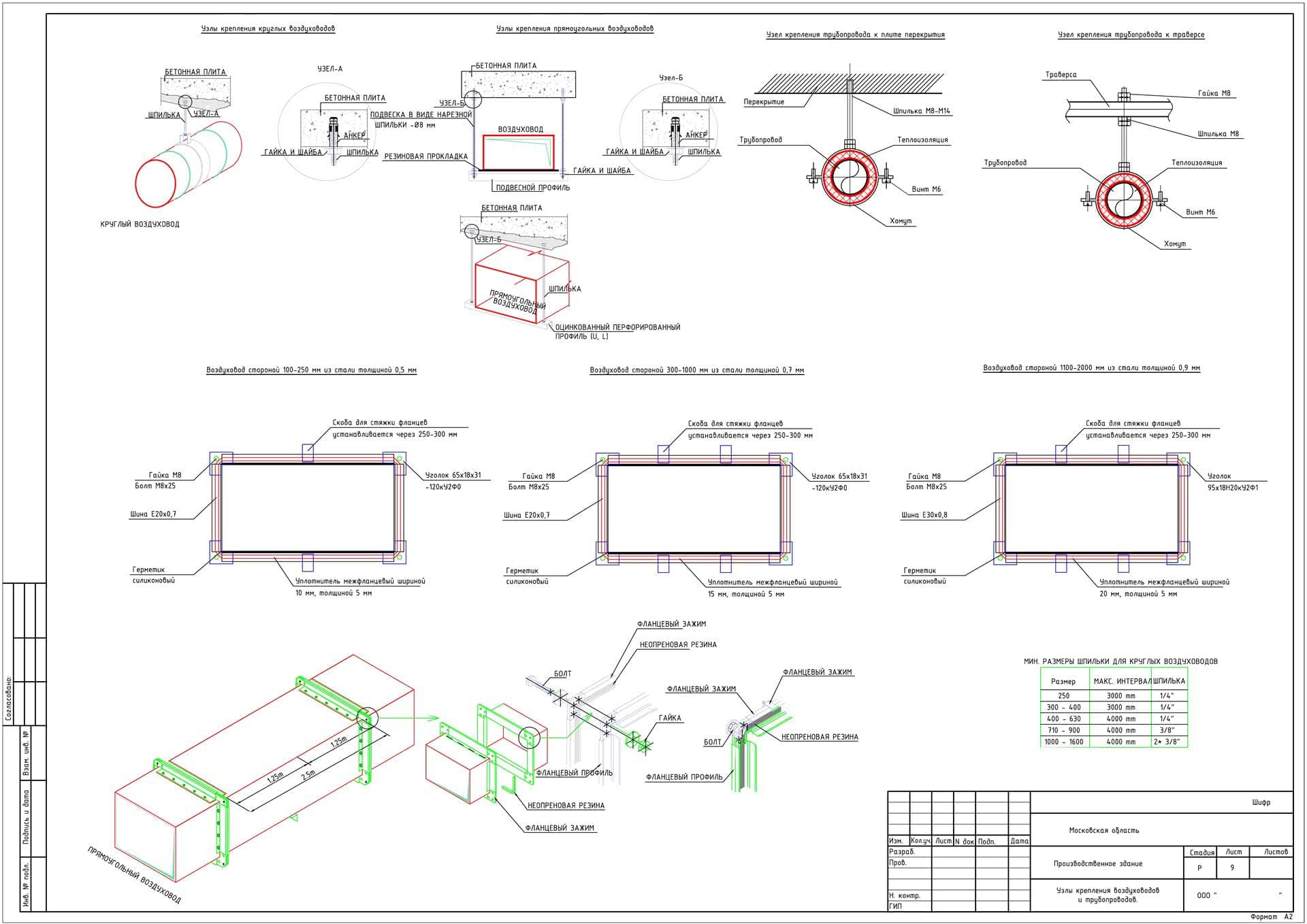 Рабочее давление и сечение воздуховода