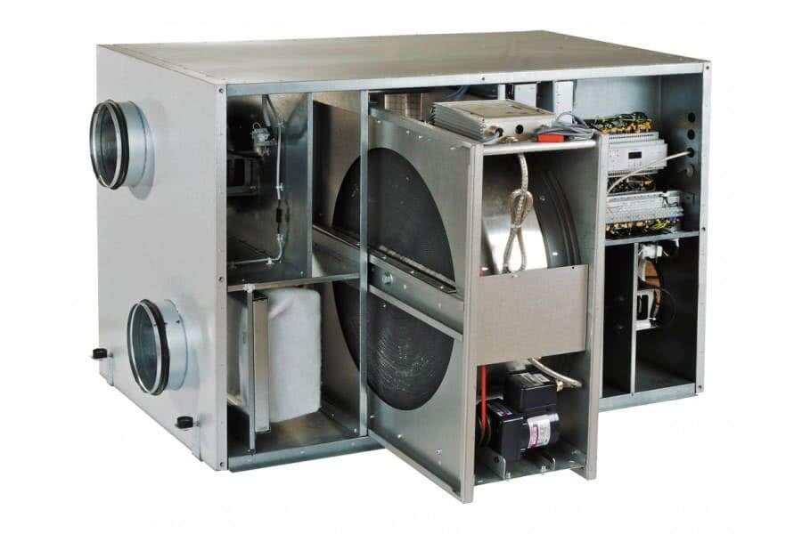 Основные части рекуперационной системы — вентилятор и основной блок (кассета) с пластинами. Другие элементы: