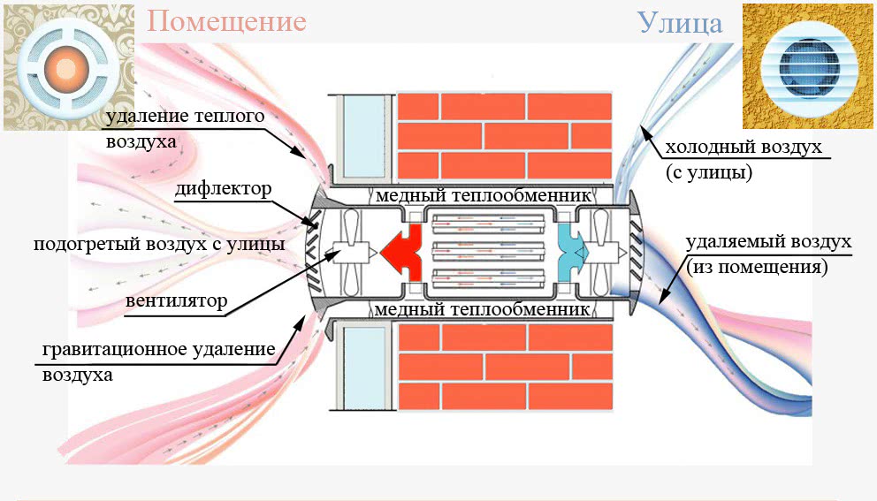 - Монтаж отдельных приточно-вытяжных устройств с рекуператором, который встраивается во внешнюю стену.