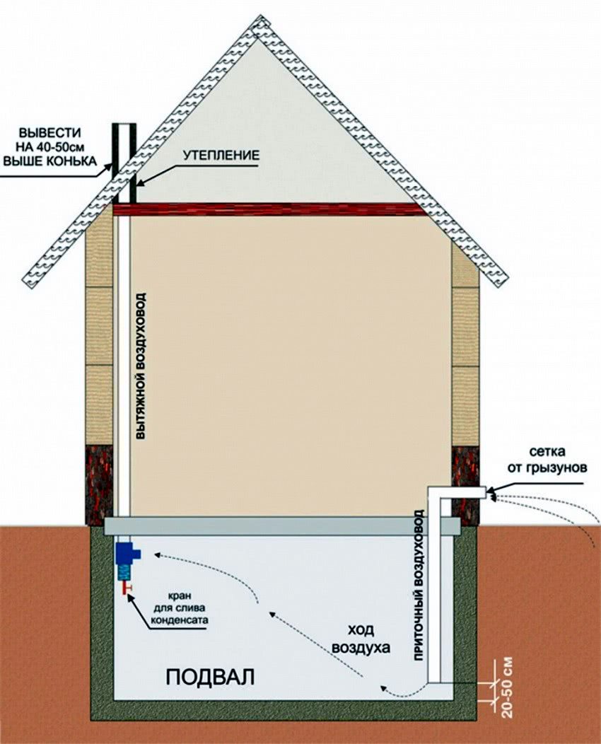Система вентиляции в подвале гаража. Схема воздухообмена погреба
