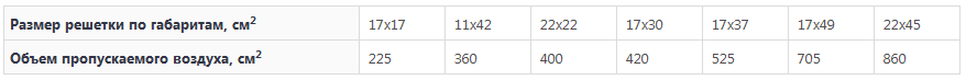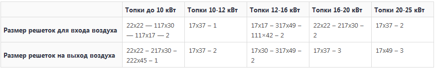 Решетки, которые можно использовать для притока и выхода воздуха в зависимости от мощности топки: