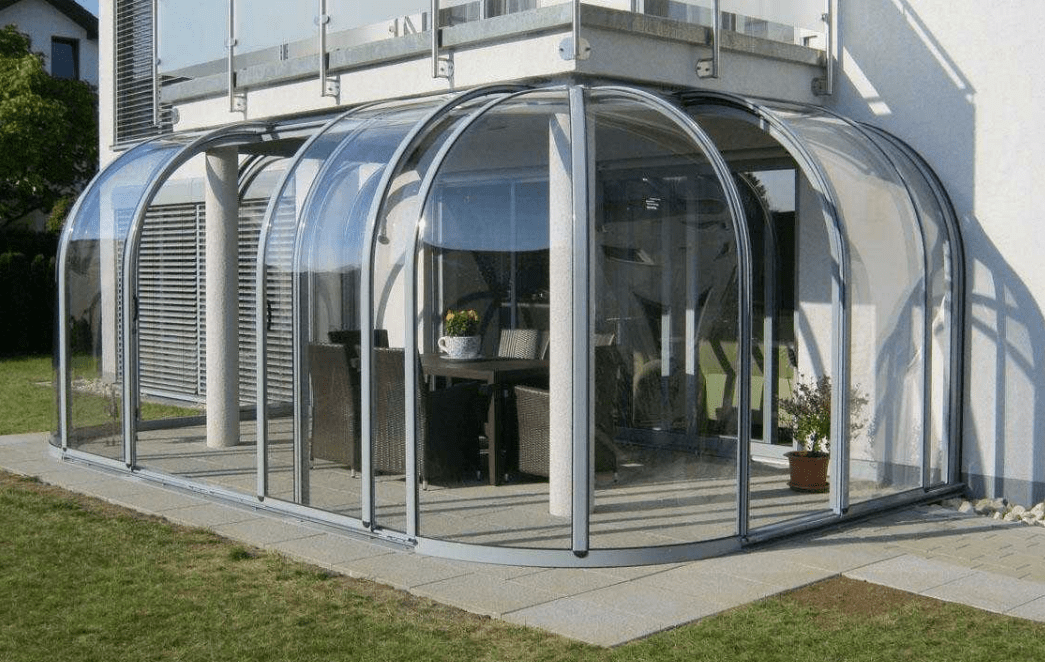 При установке арочной веранды с прозрачной крышей к дому обратите внимание: