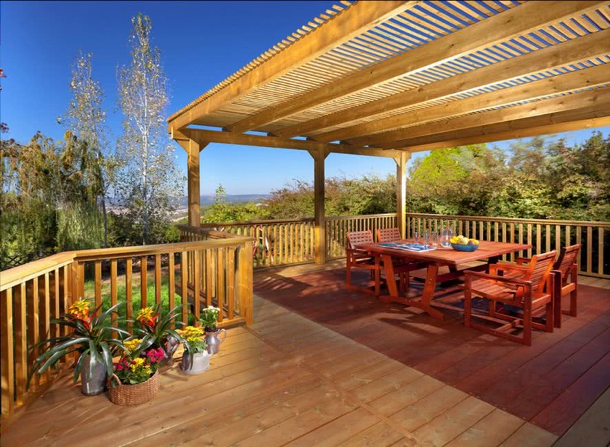 Открытые же веранды целесообразно возводить в южных регионах. Как правило, они используются в качестве мест отдыха или обеденных залов на свежем воздухе. Хотя открытые конструкции требуют существенно меньшего количества строительных материалов, процесс их эксплуатации имеет определенную специфичность. Например, предстоит прикладывать гораздо больше усилий по защите строительно-отделочных материалов веранды от негативного влияния окружающей среды, особенно в зимнее время.