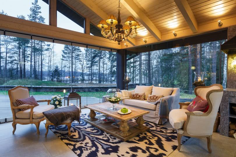 Веранда может заменять собой летнюю кухню, в которой в теплое время можно готовить и принимать пищу, может служить местом отдыха всей семьи, потому как летом в ней можно спрятаться от солнца и побыть на природе, максимально открыв все окна, а весной и осенью будет возможным созерцание окружающего ландшафта, не выходя из дома.