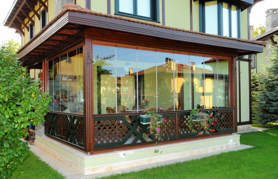 Что касается закрытых веранд, то их допустимо использовать круглый год. Существуют и комбинированные веранды, часть которых выполняется закрытыми, а часть открытыми.