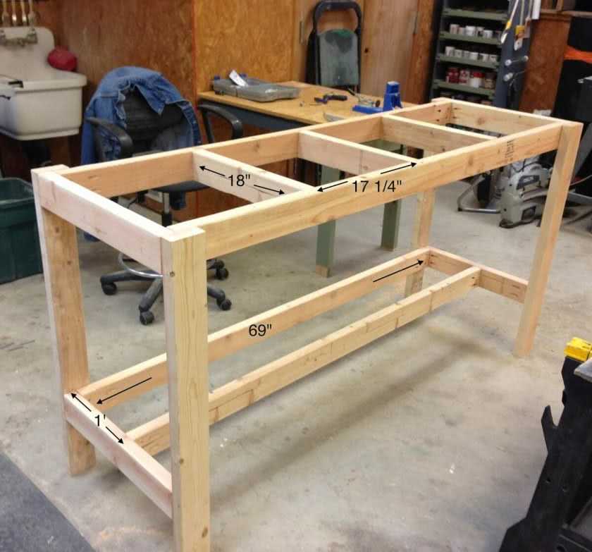 Верстаки бывают разных конструкций. Поэтому рассмотрим несколько вариантов такого стола и этапы его изготовления.