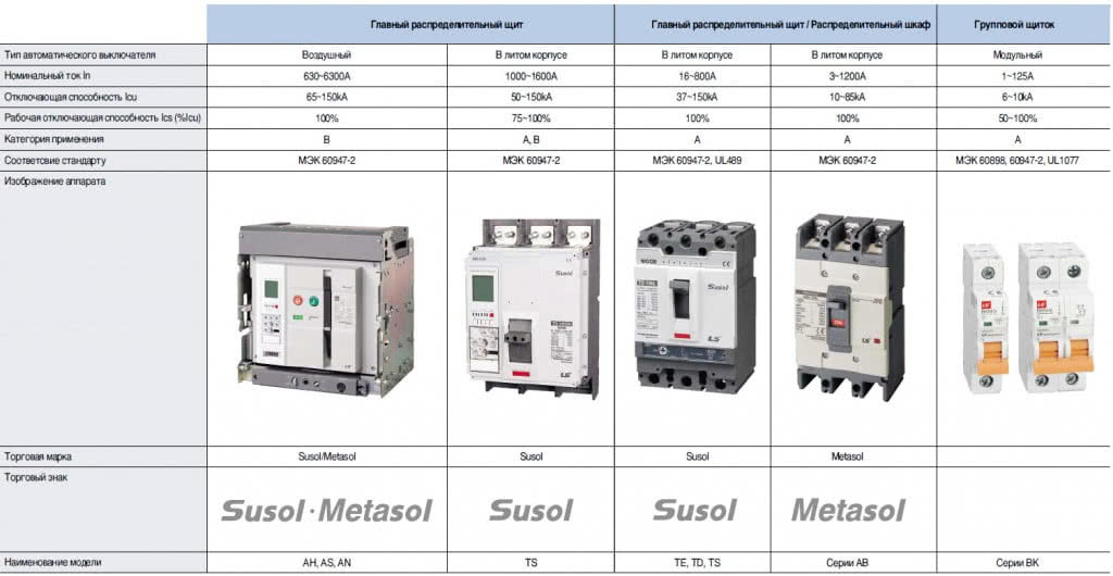 Серия автоматического выключателя определяет эксплуатационные характеристики. Традиционно в промышленных и бытовых электроустановках принято использовать устройства 4 серий: