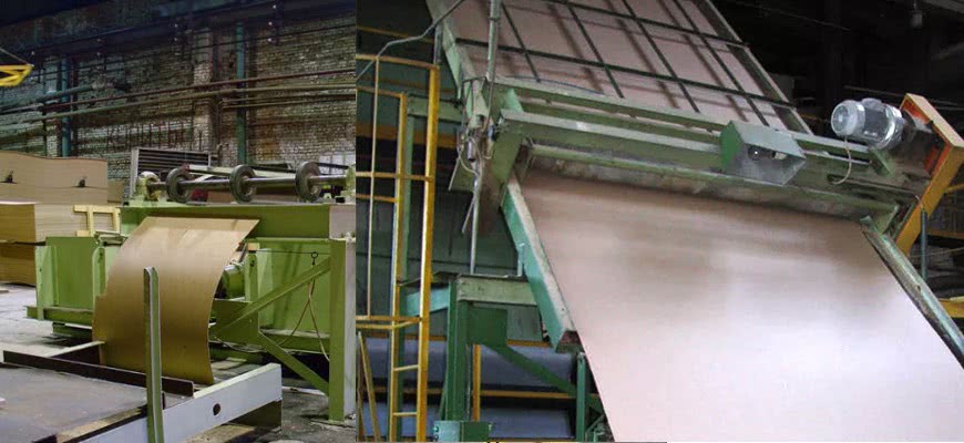 Из камеры плиты выходят, практически с нулевой влажность и начинают активно впитывать влагу из воздуха. В результате этого процесса, края листов разбухают. Чтобы избежать данного недостатка, материал переносят в другую камеру, где его доводят до нормальной влажности. И только после этого, листовой ДВП может идти в продажу или на другие станки — для покраски, ламинирования.