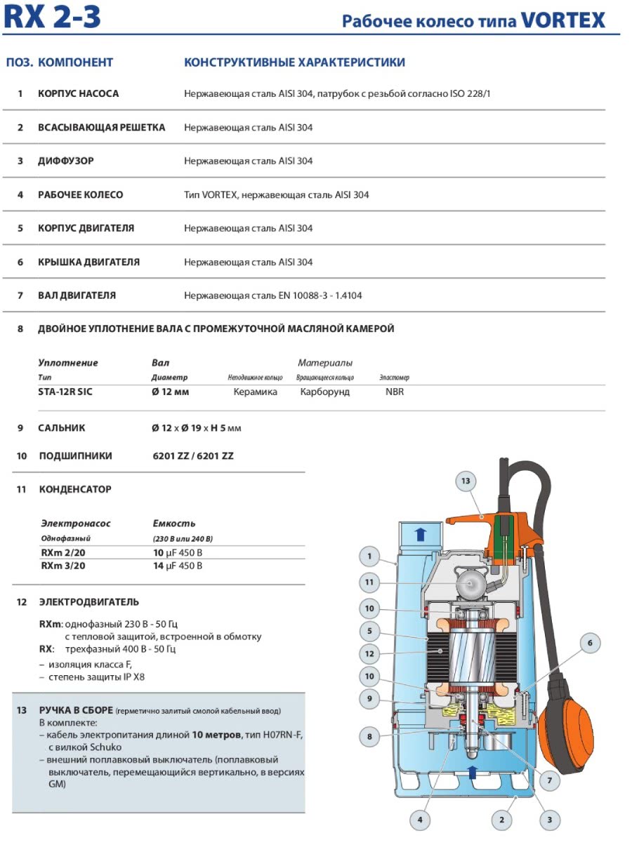 Для примера, ниже – чертёж дренажного насоса Pedrollo Vortex RX 2-3.