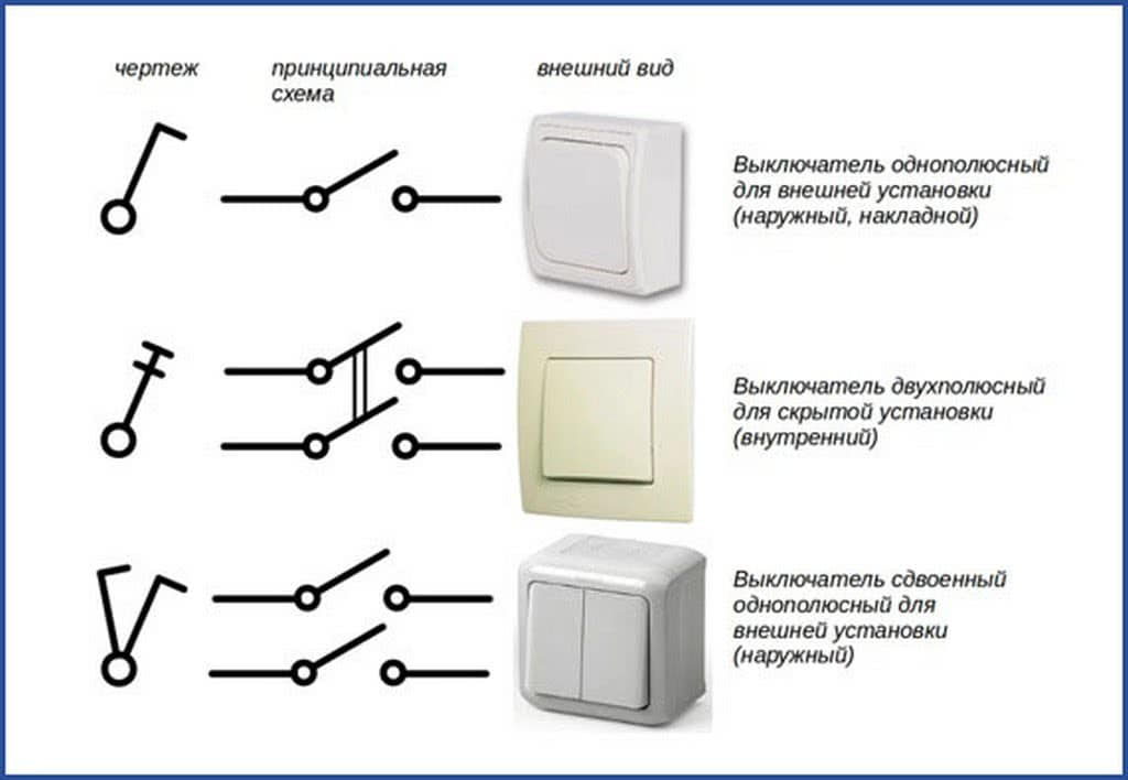 Типы выключателей — обозначение на строительных схемах