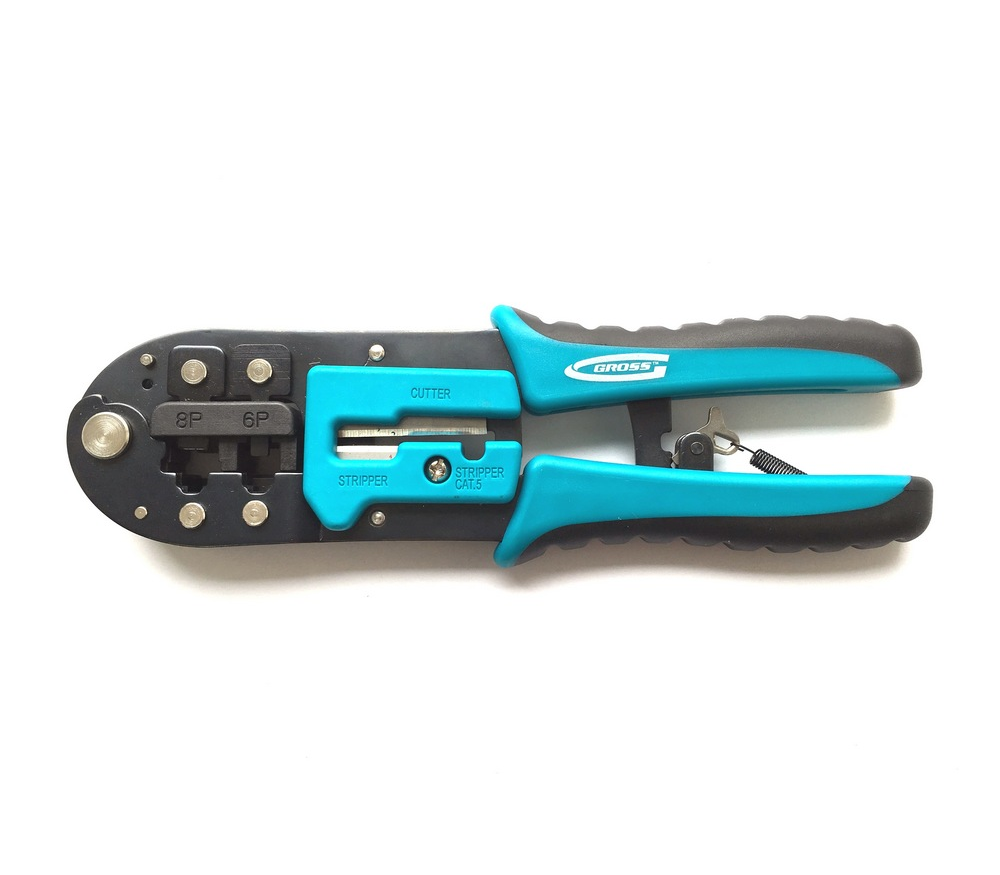 обжимные клещи, которые ещё называют кримпером — инструмент с лезвиями для зачистки изоляции и гнёздами для обеспечения хорошего контакта с проводником.