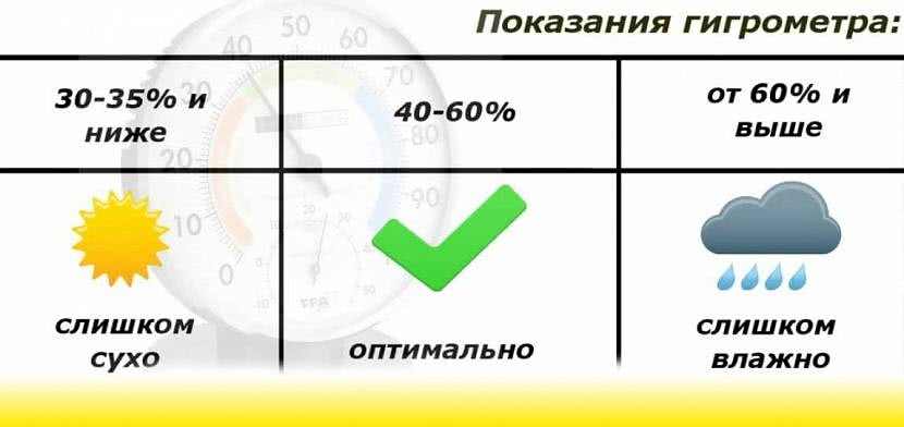 Какой должна быть влажность в квартире (усредненные показатели для основных помещений):