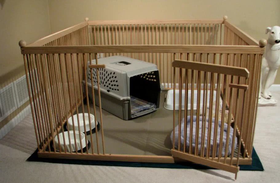 Вольеры для содержания собак в квартирных условиях дорого стоят. Их размеры индивидуальны и подбираются в соответствии с габаритами питомца. Чтобы не тратить лишних денег, можно смастерить эту конструкцию своими силами. Для маленького щенка достаточна высота 40–45 см и площадью до 100 квадратных см. Для мелких пород собак можно изготовить комнатный домик высотой около 80 см, площадью не менее полутора метров (если площадь квартиры позволяет, можно сделать и больше). Меньшую площадь вольера делать не стоит, так как вашему четвероногому любимцу необходимо пространство для сна, игр, туалета, миски с кормом и водой.