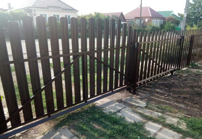 Чрезвычайно популярный вид оград. Детали конструкции прикрепляются к каркасу сваркой. Такой вид ограждения подходит практически к любой собственности. Служат ворота очень долго, оставаясь в своем первозданном виде. Для обновления внешнего вида их требуется только перекрасить. Они надежны и выдерживают большие механические нагрузки.
