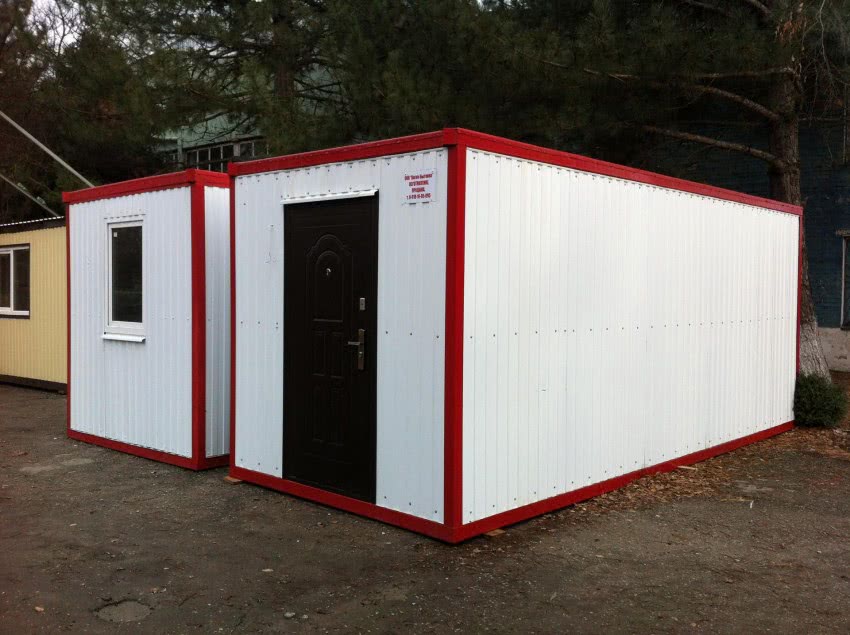 Такие бытовки напоминают стандартные вагончики для размещения строительной бригады. Они ставятся на металлический каркас, присутствует теплоизоляция, но потерь тепла не избежать. Кроме того, плохая изоляция от шума. Готовые комплекты собираются прямо на территории за несколько дней. |