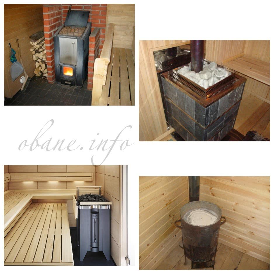 Наибольшее распространение получили дровяные печи, как признак традиционной русской печи. Складывают печь из красного кирпича, выводя топку в предбанник, чтобы подкладывать дрова можно было, не заходя в парилку. Сейчас кроме кирпичных печей наравне используют чугунные и стальные, представляющие собой емкости с дымоходом и каменкой.