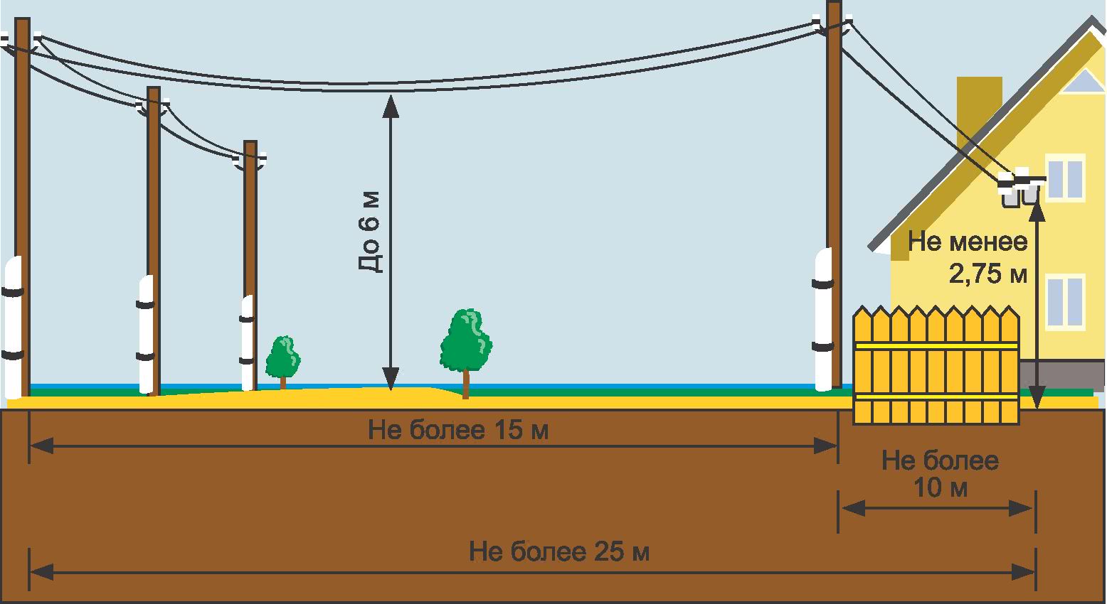 - минимальная высота подводящего кабеля над землей составляет 2,75 м;