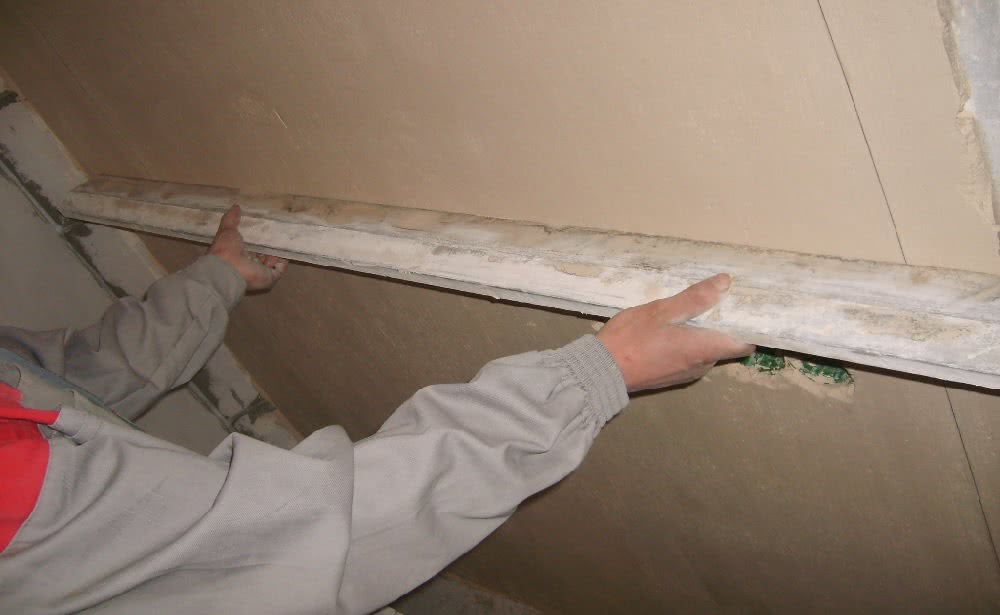Аналогично нужно сделать по всей плоскости потолка, затем дать маякам высохнуть не менее 6 часов в случае с теплоном. Работать с гипсом и алибастром сложнее, поскольку они засыхают в течение минуты. Для них нужна особая сноровка и большой опыт.