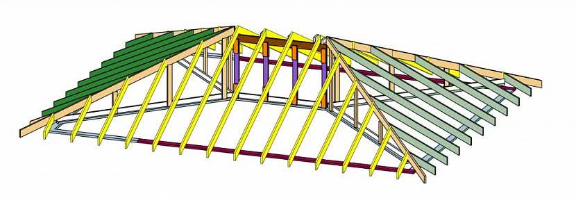 Устройство крыши вальмового вида складывается из следующих составляющих: