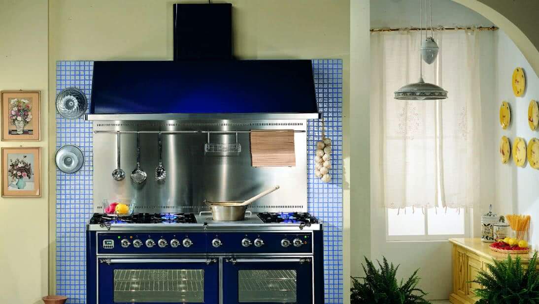Объем большого помещения требует мощного оборудования. Устройство вентиляции на кухне вешается на максимальном удалении от поверхности печки, рекомендованном в техническом паспорте данной модели.