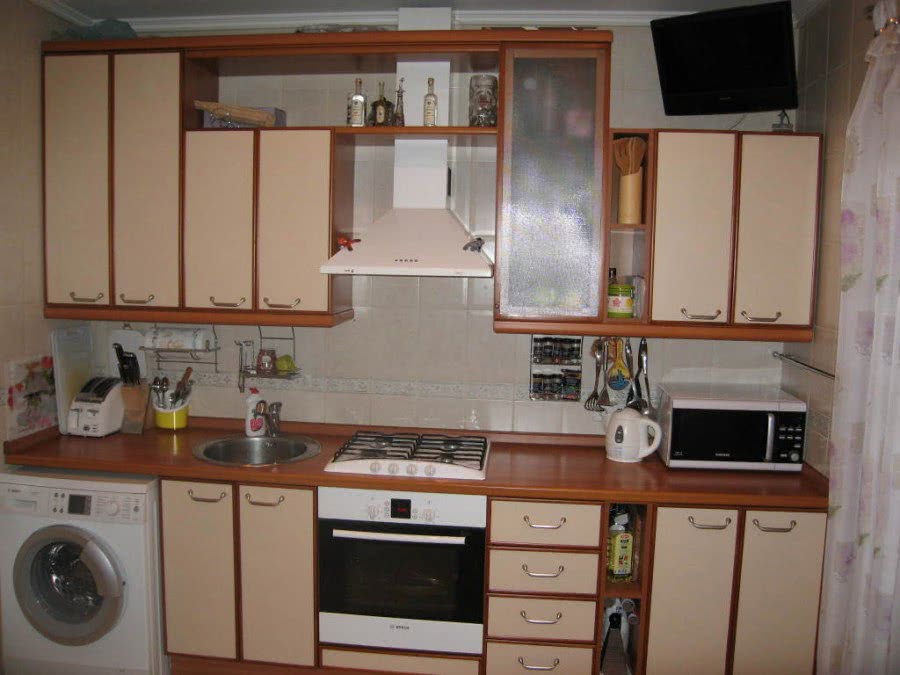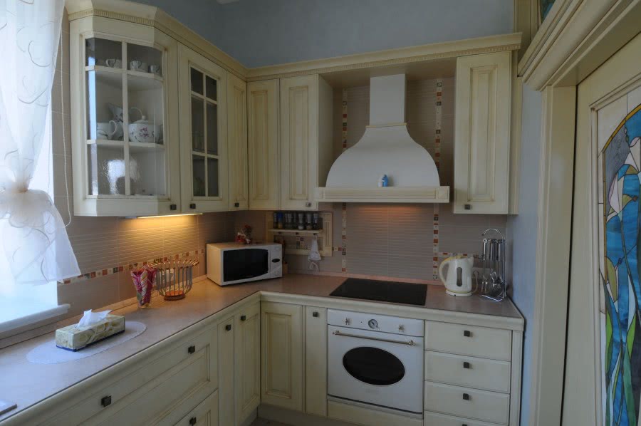 - Угловые. Монтируются в одном из углов кухни.