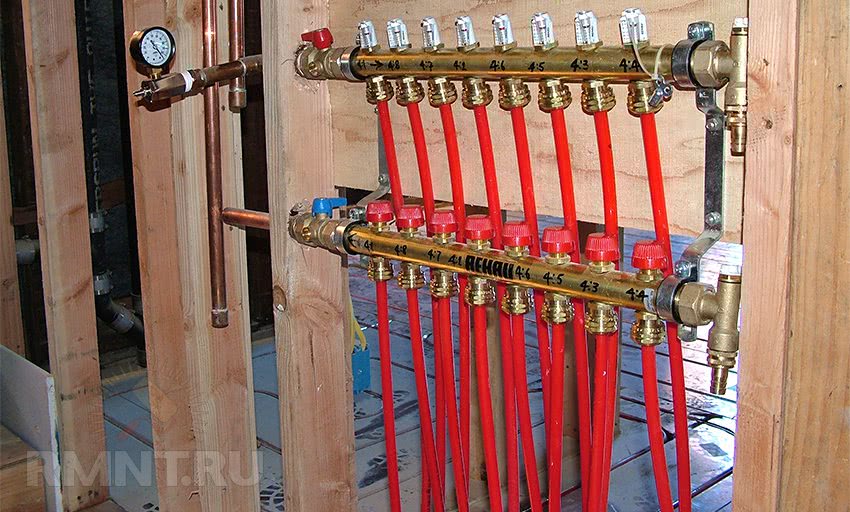 - коллекторные гребенки, распределяющие и контролирующие циркуляцию теплоносителя;