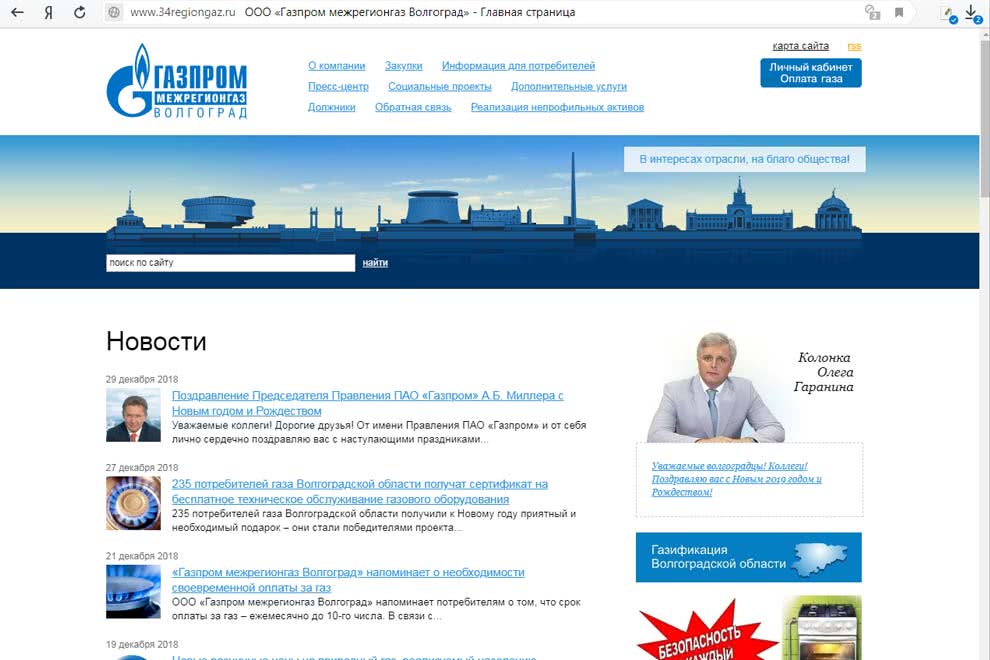 Приведенная выше информация вносится на официальном сайте поставщика газа