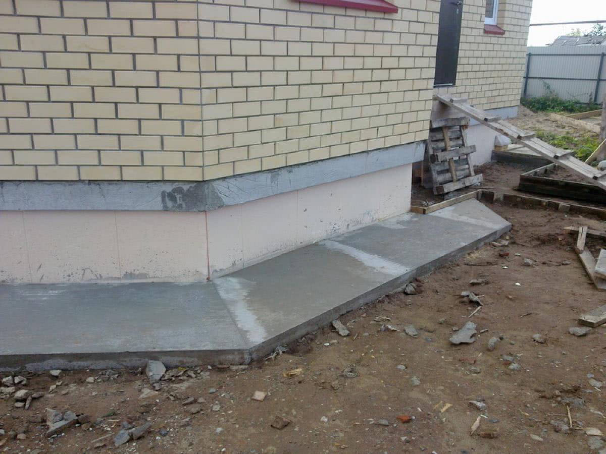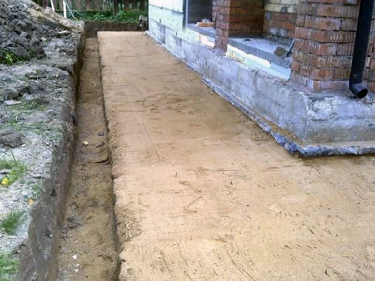 При обустройстве учитывают угол наклона для схода воды. Перечисленные материалы противостоят просачиванию воды и обеспечивают защиту грунтов, прилегающих к строению. Заливка из этих материалов должна быть очень качественной с оставлением зазоров для возможных деформаций в период изменения температурных режимов.