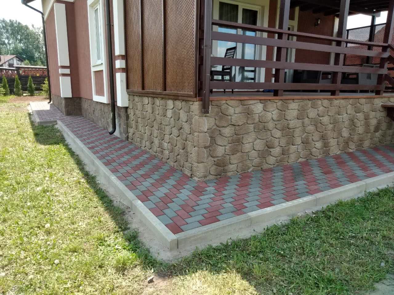 Стоит упомянуть и декоративную составляющую отмостки фундамента – согласитесь, выполненный из тротуарной плитки, этот элемент строения ничем не будет отличаться от красивой садовой дорожки, отлично впишется в общий ландшафтный дизайн участка.