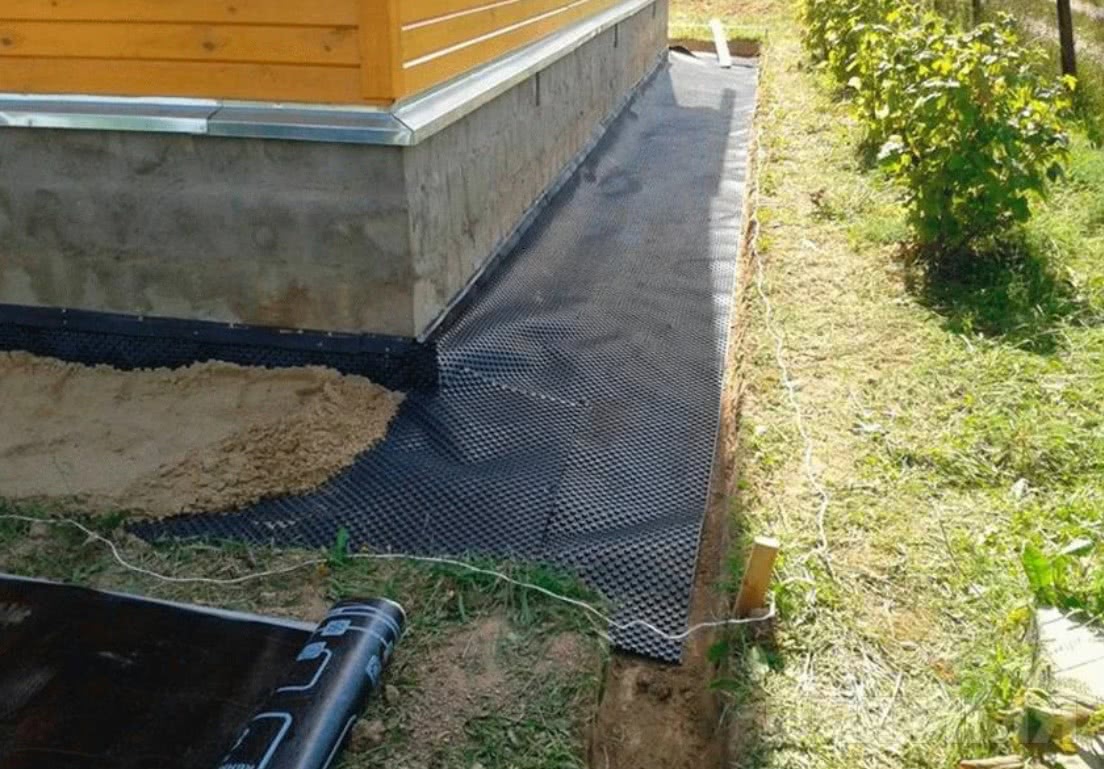 Под мягкой отмосткой прокладывают дренажную трубу, которая принимает и отводит воду от фундамента строения. Водонепроницаемый слой, дренажная труба находятся поверх гидроизоляционного слоя. Часто используют плёнку для бассейнов ли рубероид. Лучшие материалы для гидроизоляции: