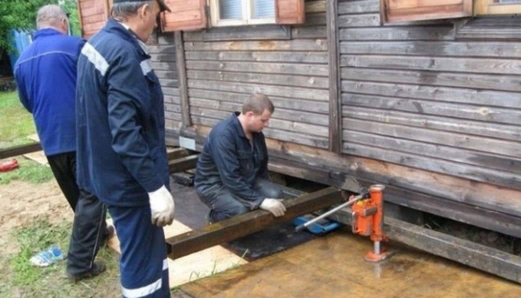 Подъем дома домкратами