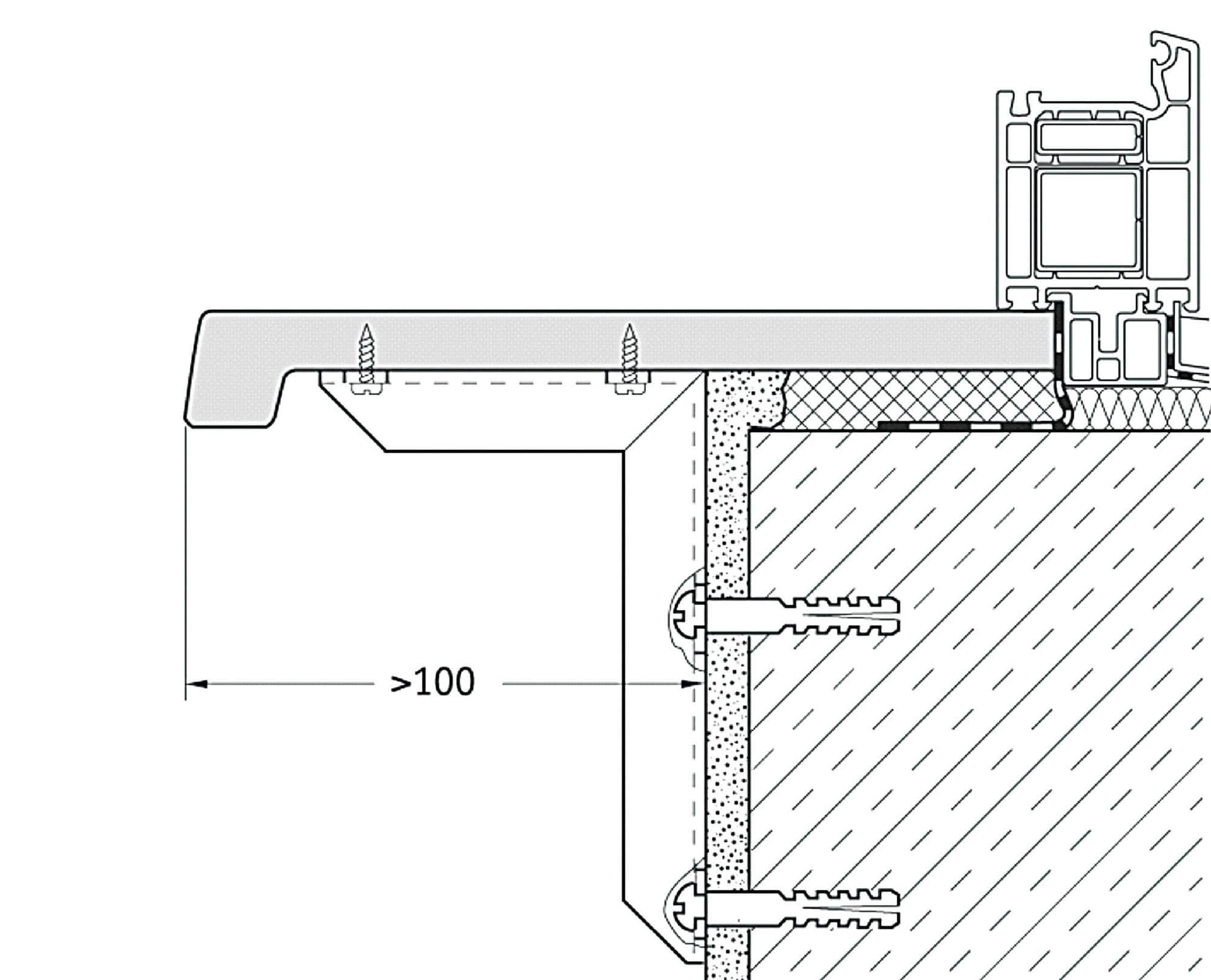 - Подоконная планка подводится к месту и защелкивается после легкого нажатия.