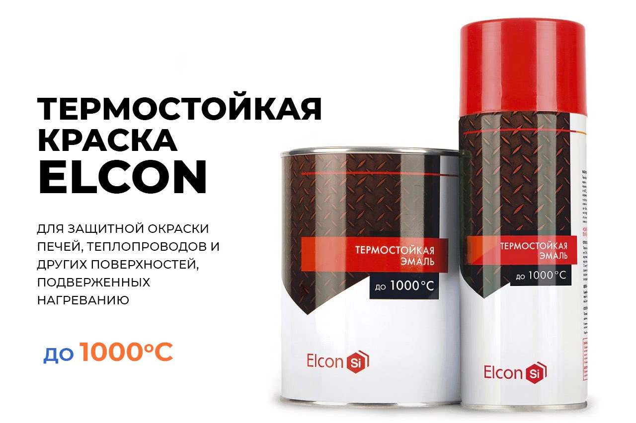 Антикоррозийная термостойкая эмаль ELCON способна выдержать температуру до 800 ℃, в том числе, резкие ее перепады. Используется для окрашивания бетона, кирпича и металла. Выпускается в банках в большом количестве цветовых решений. Есть также аэрозольный вариант краски ELCON в баллонах по 520 мл – она рассчитана на прогрев до 700 ℃.