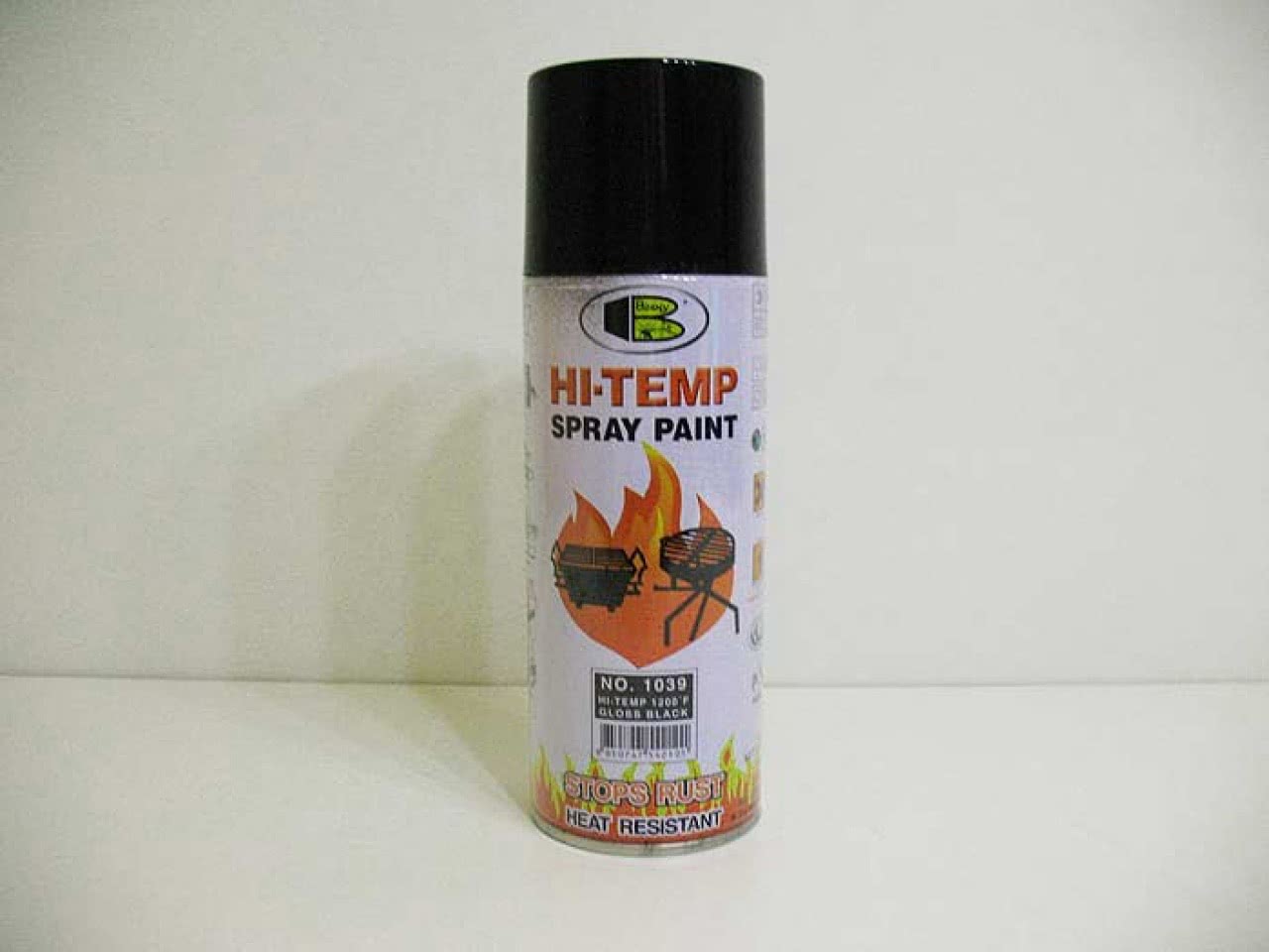 Краска аэрозоль Bosny. Выпускается в двух вариантах – для нагрева до 650 ℃ и до 200 ℃. Она хорошо ложится, долгое время не меняет цвет и не растрескивается. Применяют данную марку термокраски для покраски металла, пластика, керамических изделий и стекла, дерева и тканей