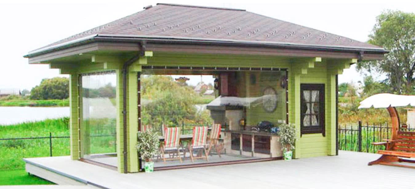 Гибкие окна для беседки созданы специально для того, чтобы защищать строение от проникновения ветра и дождя, изолировать от громких звуков и оградить от вторжения надоедливых насекомых. Шторы из ПВХ способы сохранять комфортную температуру внутри строения и спрятать все происходящее от посторонних взглядов.